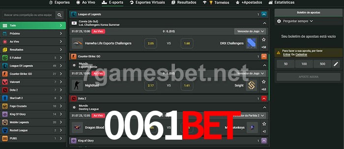 O 0061Bet oferece uma grande seleção de opções de apostas em e-sports com probabilidades competitivas